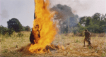 There are several scenes, which show the power these men posses. When the father summons evil Mari to aid him in finding his son, the sacrifice, a chicken strung upside down from a Kolonkalanni, and burnt tree stump he uses explodes into flame and then magically extinguishes, so that he can use the “tracking pylon” to track Nianankoro.